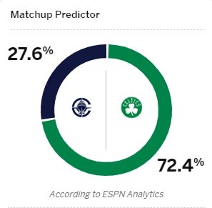 Today ESPN gave a prediction of the winning probability of this game, of which the Clippers are only 27.6% and the Celtics are as high as 72.4%!