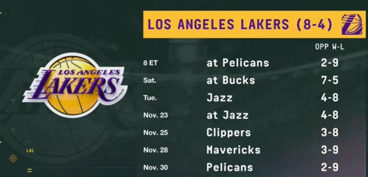 The sweet schedule is coming! The Lakers have seven remaining games in November, and only the Bucks have a winning percentage above 50%