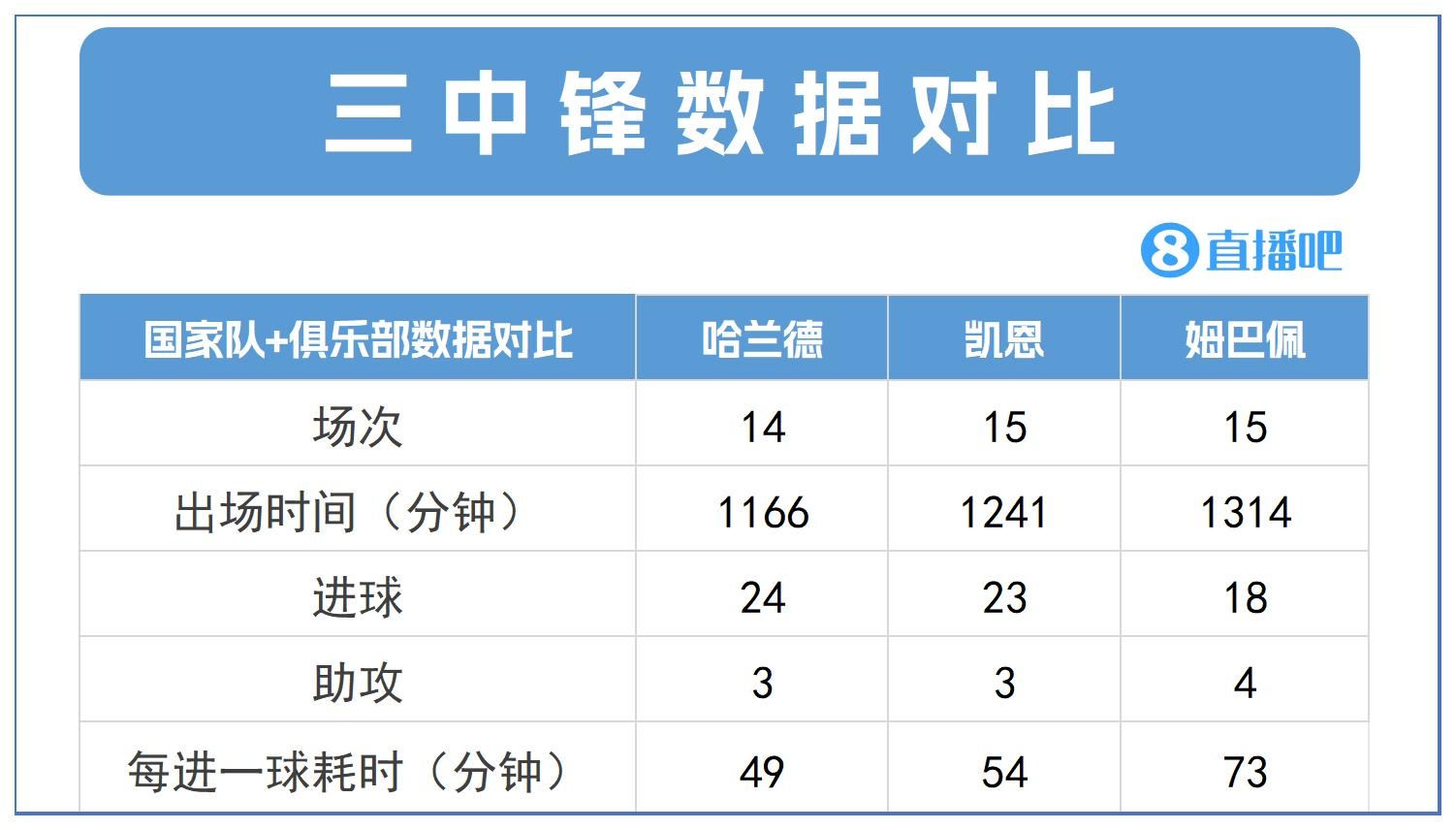 Including the goals of the national team, Kane has 23 goals and 3 assists in 15 games, with a goal efficiency of 54 minutes/goal, Haaland 49 minutes/goal, and Mbappe 73 minutes/goal.