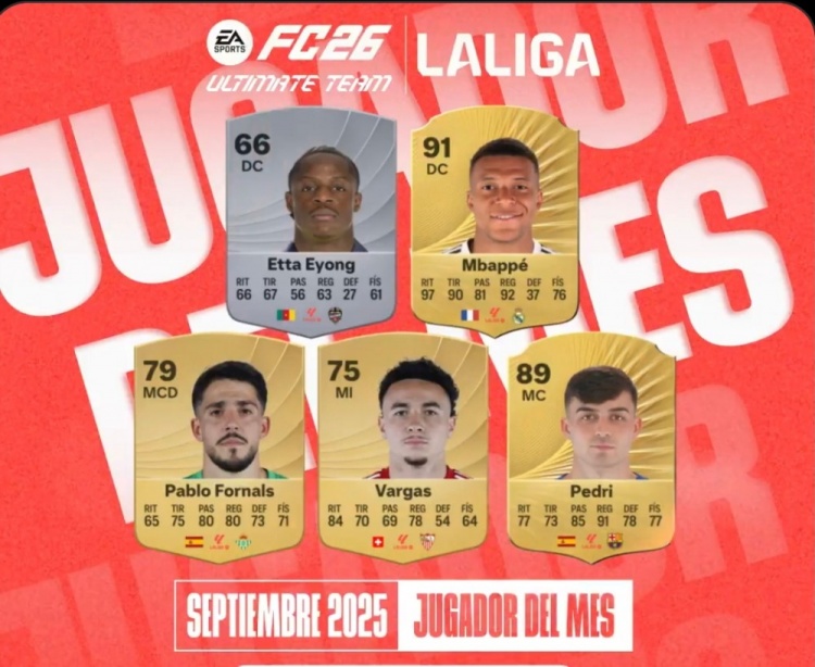 La Liga official selected the list of best players in September, with Mbappe and Pedri leading the way, as follows: