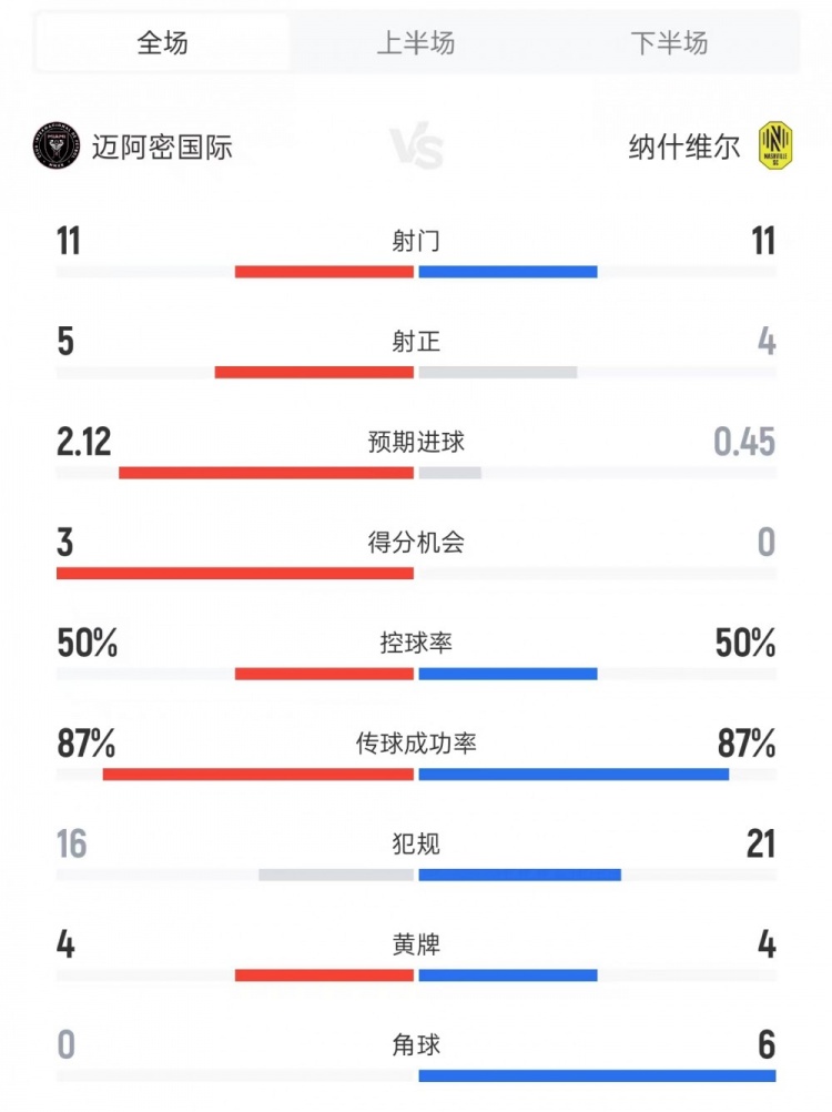 Miami vs. Nashville stats: 11-11 shots, 5-4 shots on goal, 3-0 scoring chances