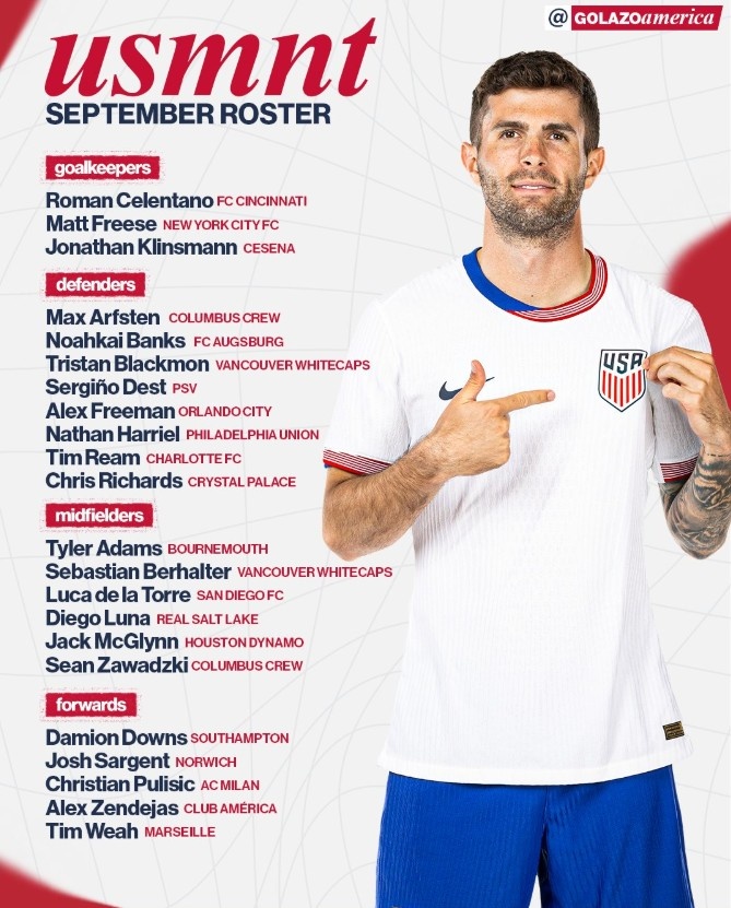 US roster: Pulisic led, Weiah Jr., Dest, and Klinsman Jr. were selected